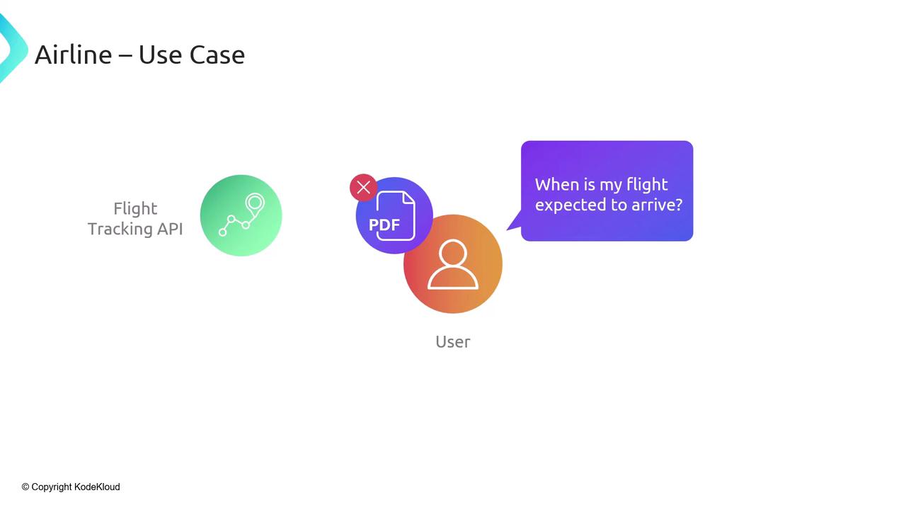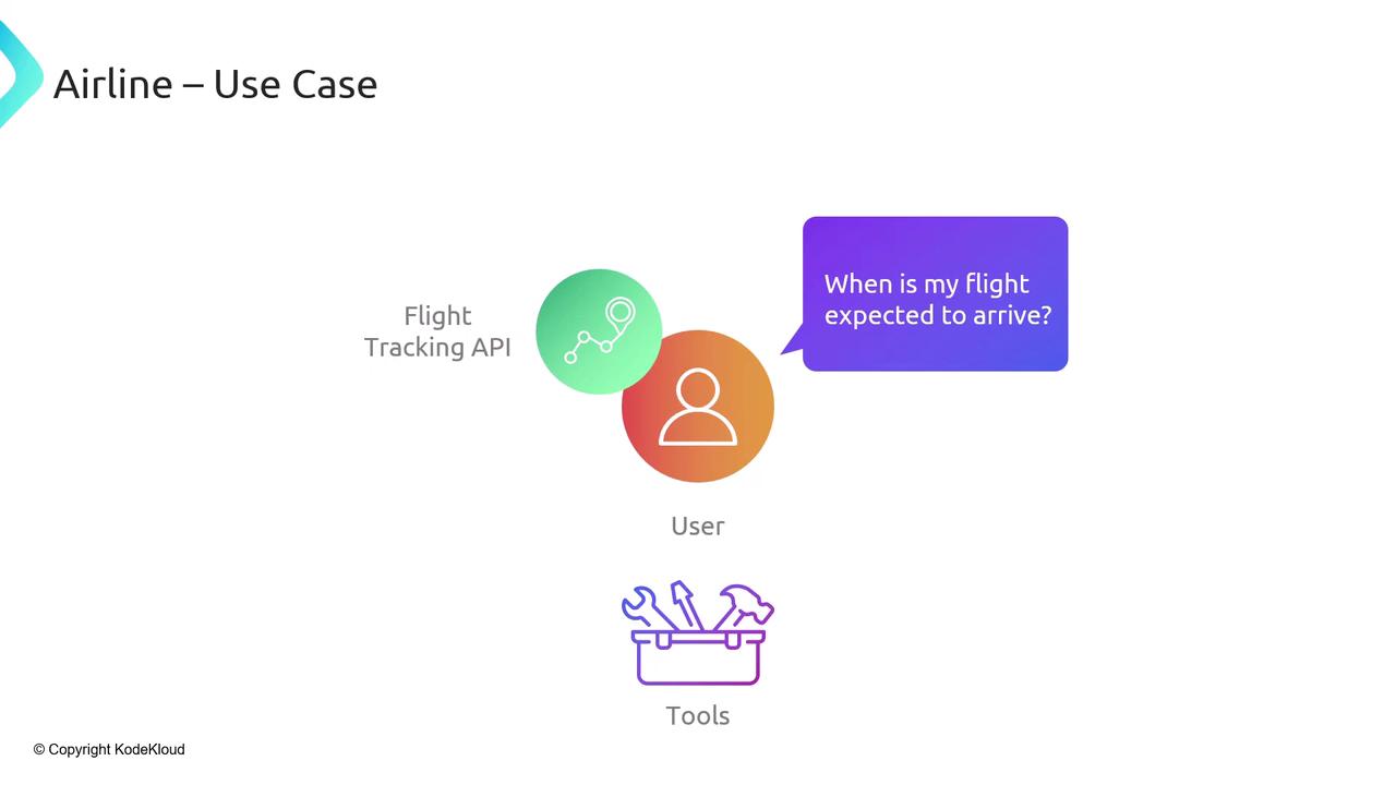 The expected arrival isn’t in static documents—you must call a flight-tracking API for live data. This is exactly where tools come in.