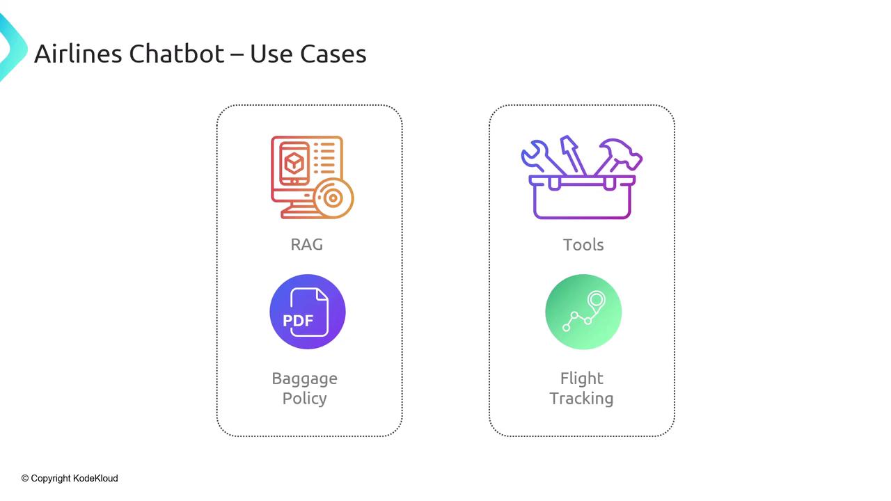 In this lesson, we’ll dive into LangChain tools—modular components that let your LLM applications fetch real-time data or perform advanced processing beyond what a static knowledge base or prompt alone can handle. By the end, you’ll understand when to use retrieval-augmented generation (RAG) versus real-time tools and how they fit into production workflows.