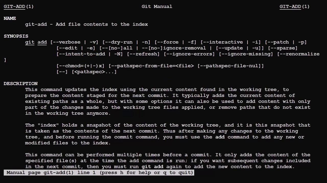 Git is a powerful tool with a wide range of features. If you ever need assistance or a reminder of a command's options, simply type "git" and press the tab key twice to see a list of commands. For in-depth information on any command, you can consult the manual pages: