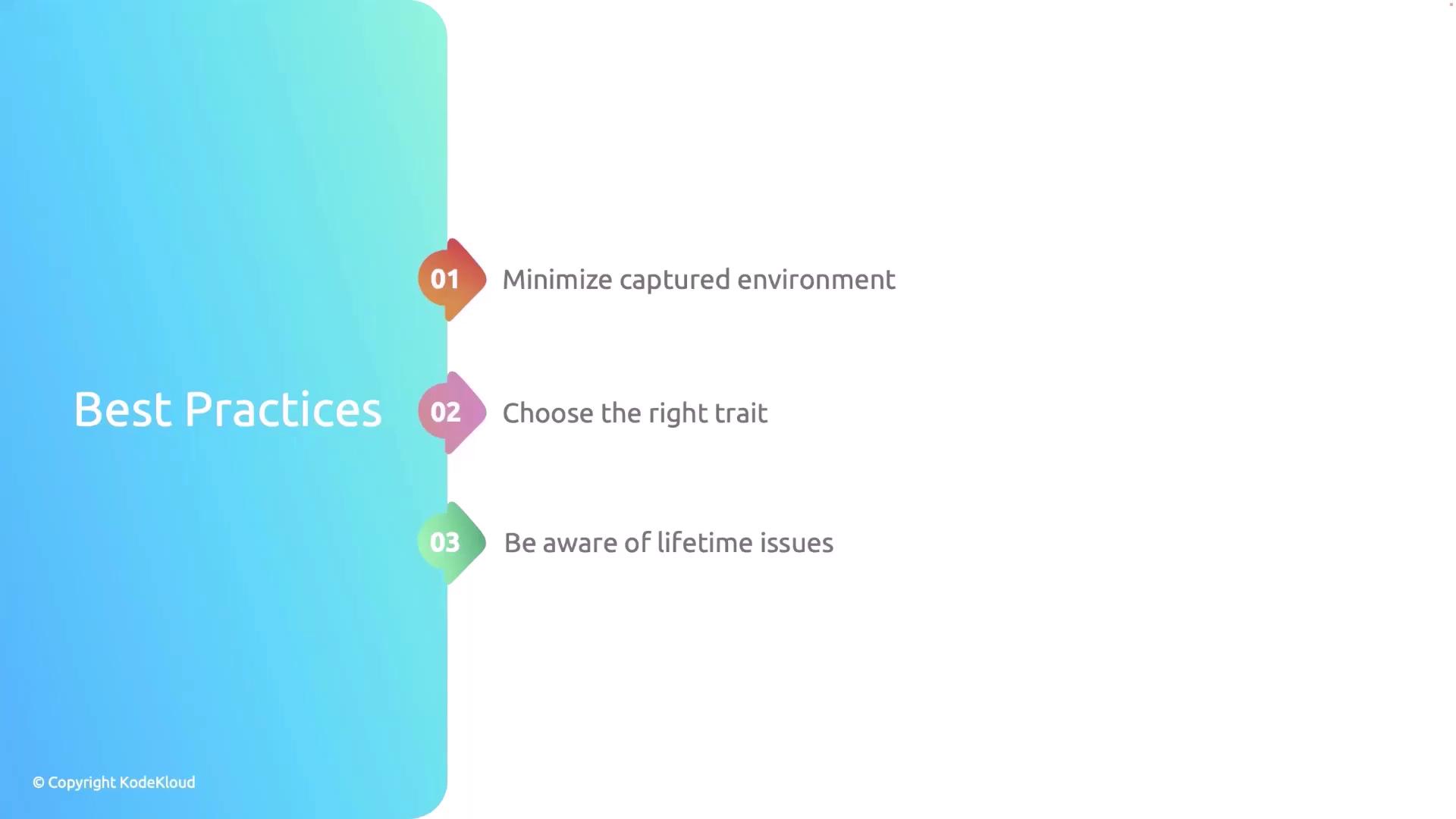 - Minimize the Captured Environment: Capture only what is necessary to reduce overhead.