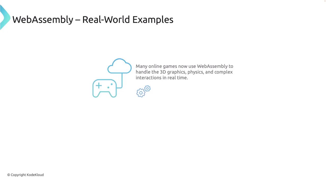 Many modern online games leverage WebAssembly to manage real-time 3D graphics, physics calculations, and complex interactions. This results in smoother gameplay, improved responsiveness, and reduced lag during intense processing tasks.