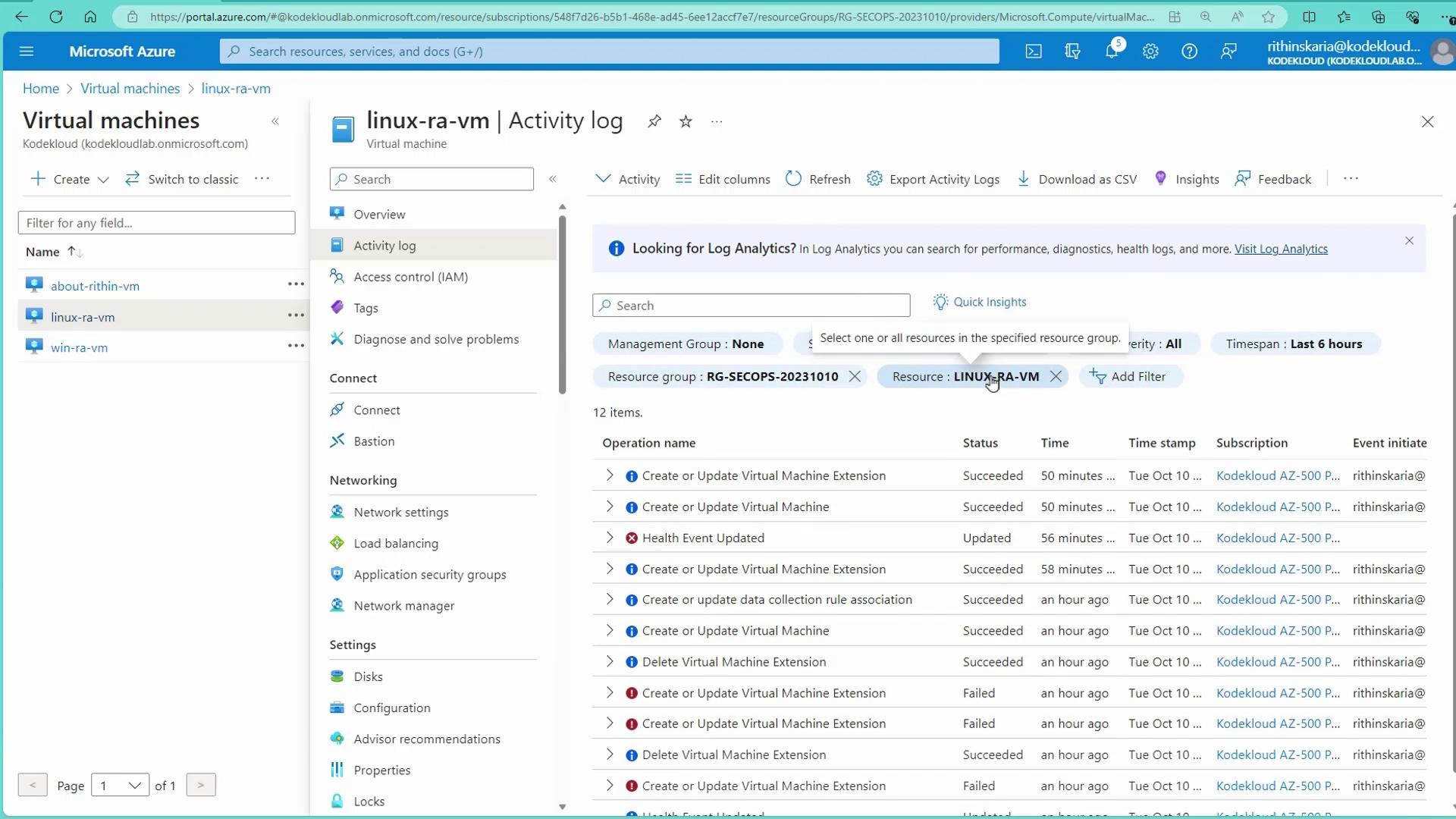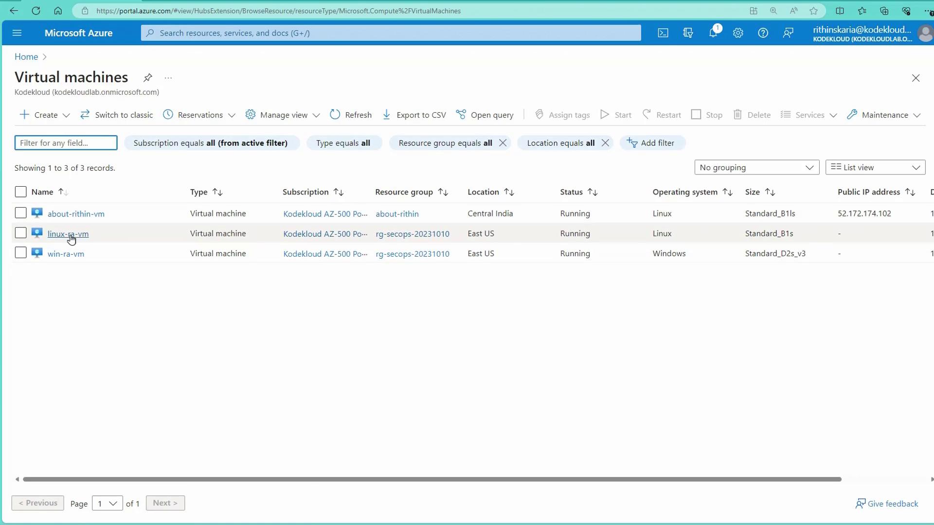 In the Azure Portal, go to Virtual Machines and select a Linux machine.